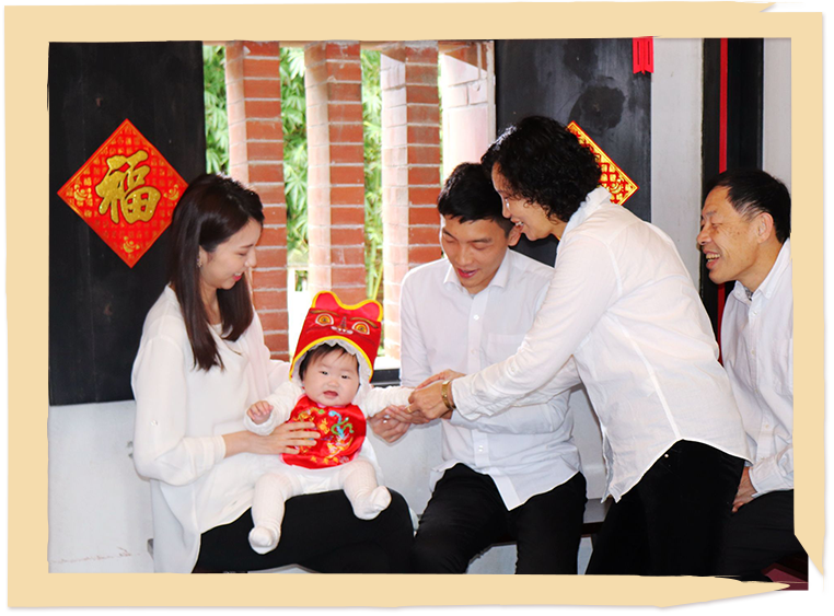 紅嬰仔出生滿週歲,古稱「度晬ㄗㄨㄟˋ」,當天外公外婆及親友送來賀禮,家裡準備牲禮、紅龜粿、雞酒祭拜神明祖先後,將紅龜粿送給親友分享喜悅。接著透過抓周禮俗慶祝紅嬰仔的第一個生日,首先讓紅嬰仔腳踩「紅麵龜」象徵健康長大、長命百歲,然後準備十二樣象徵不同行業的物品放置在米篩內,讓紅嬰仔從中抓取三物,此物特徵用來預測紅嬰仔未來職業或性向。