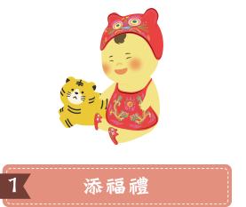 - 古禮抓周活動內容: (贈專屬虎帽、圍兜、虎鞋穿戴、全程活動主持人帶領)
